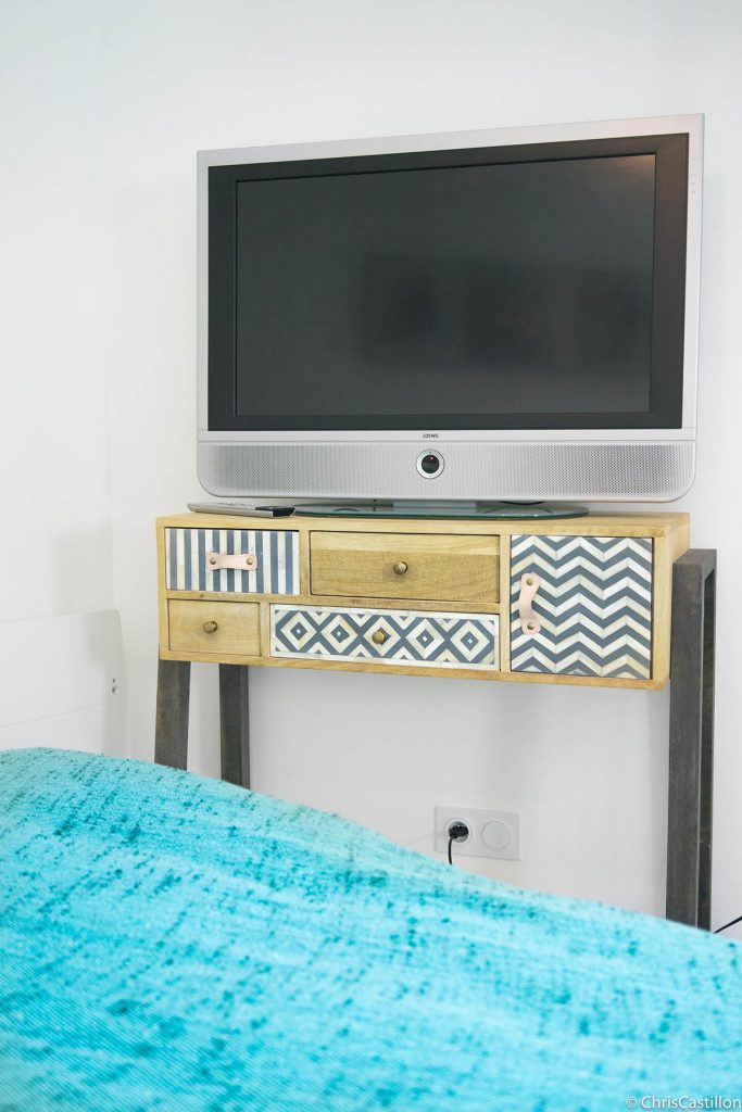 Cet appartement dispose d’un patio privé très calme, habillé d’une terrasse et d’un bardage bois, équipé d’une table de repas avec 2 chaises. Endroit privilégié pour un moment détente…