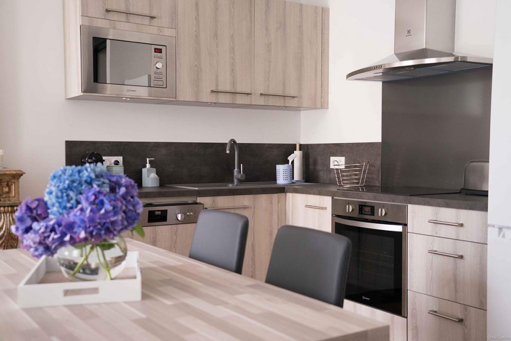 • une cuisine entièrement équipée (four, réfrigérateur/congélateur, plaque induction, lave vaisselle, micro ondes, grille pain, machine à café Nespresso, bouilloire…),