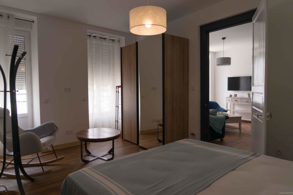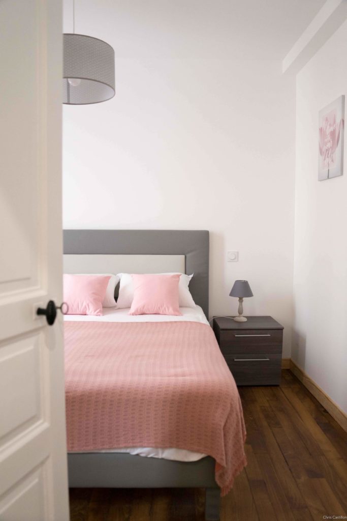 • une 1ère chambre de 17m2 avec son lit queen size en 160, sa cheminée déco, une grande armoire de rangement, son espace lecture