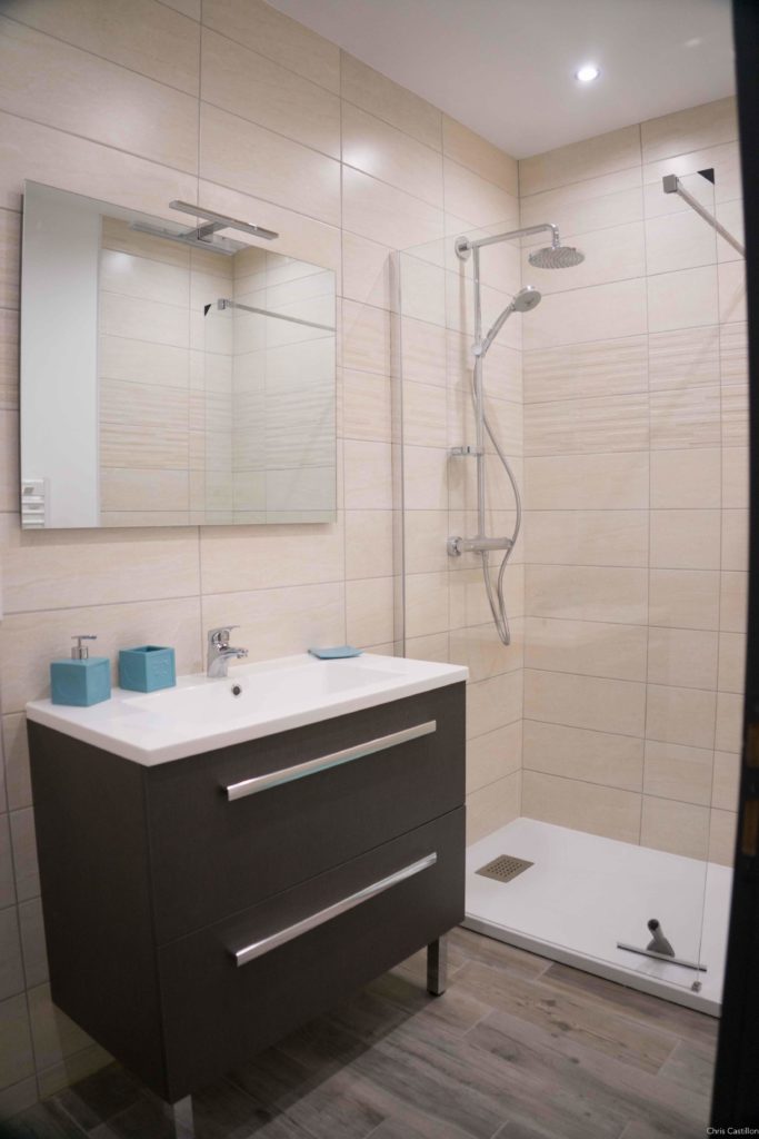 • une belle salle d’eau avec douche à receveur extra plat, sèche serviettes, sèche cheveux, trousse de 1er secours